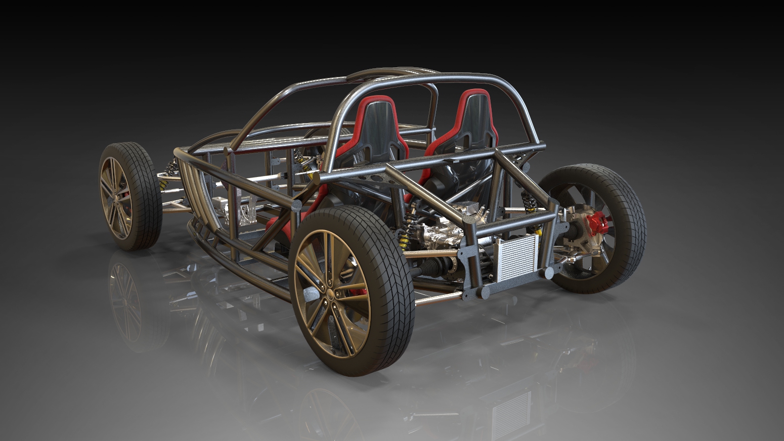 Minimalist electric car built around a tubular space-frame